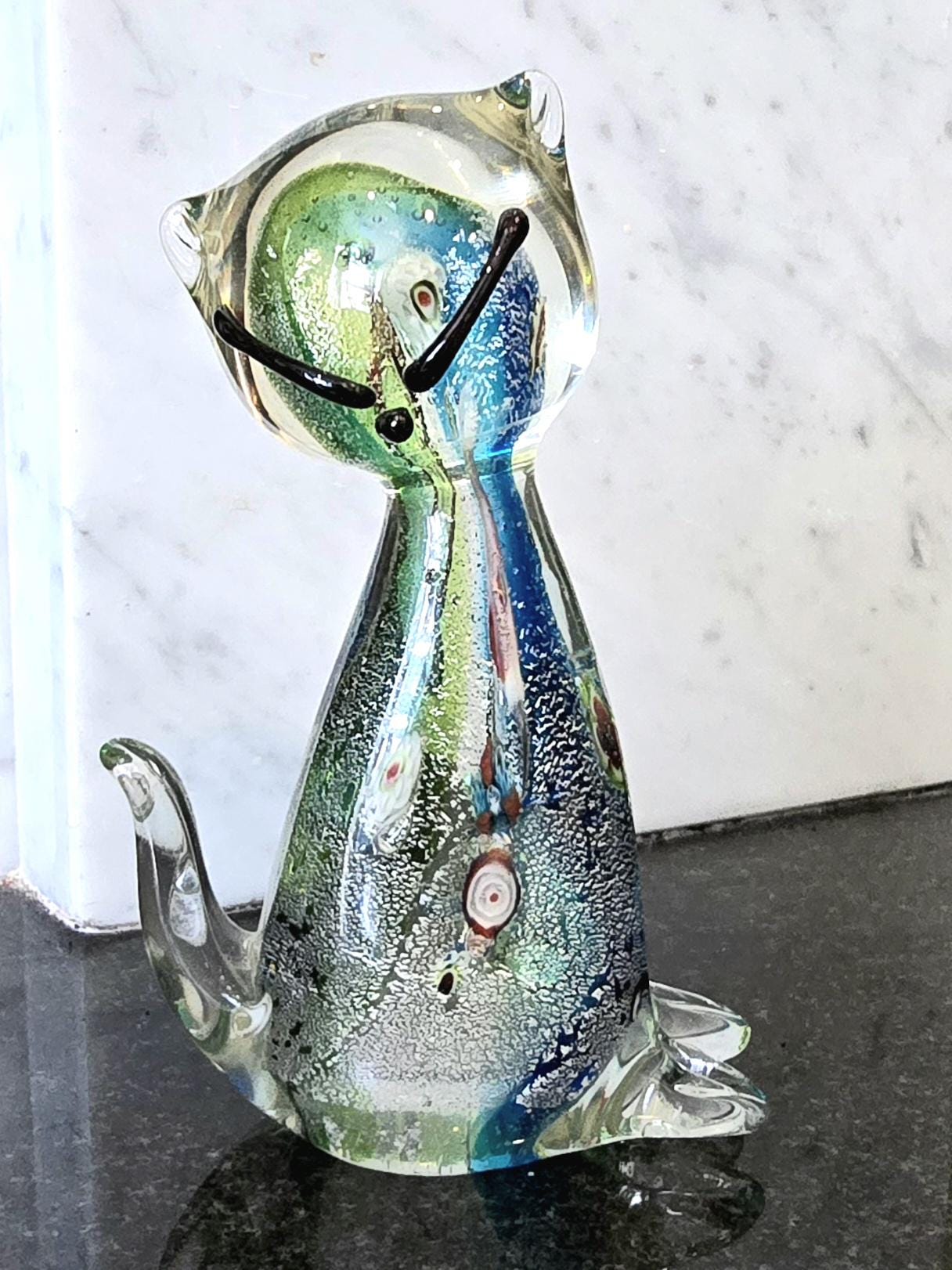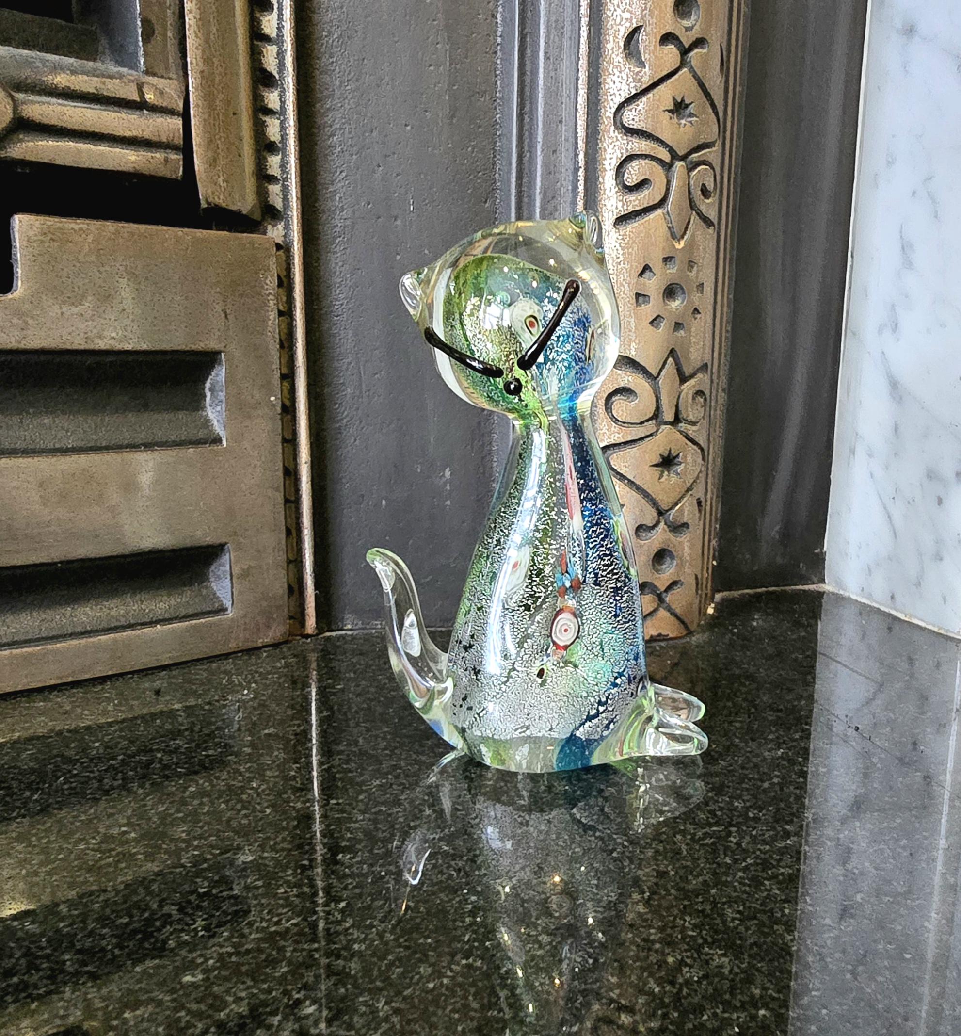 Perfect for collectors of glass animals, cat figurines, or lovers of mid-century modern decor and studio glass art. This piece brings quiet charm to any bookshelf, windowsill, or sanctuary space.