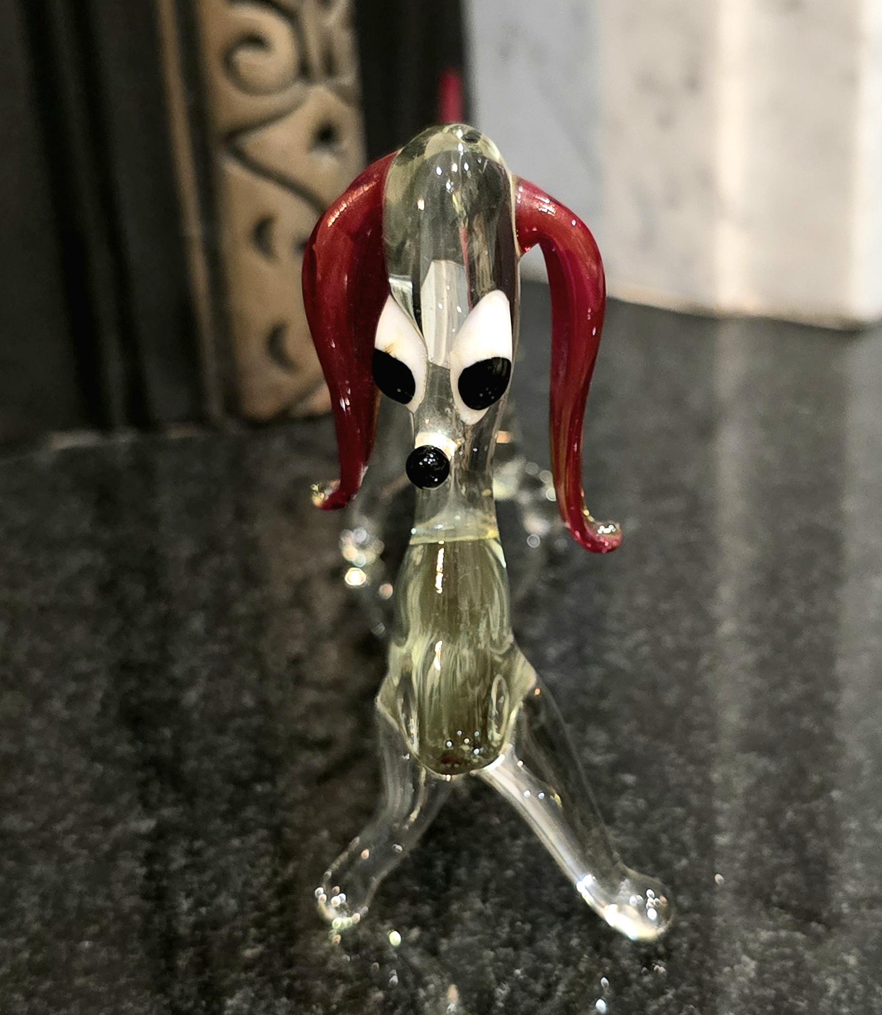 Vintage Glass Dachshund Figurine: Red Eared Kitsch Dog Ornament