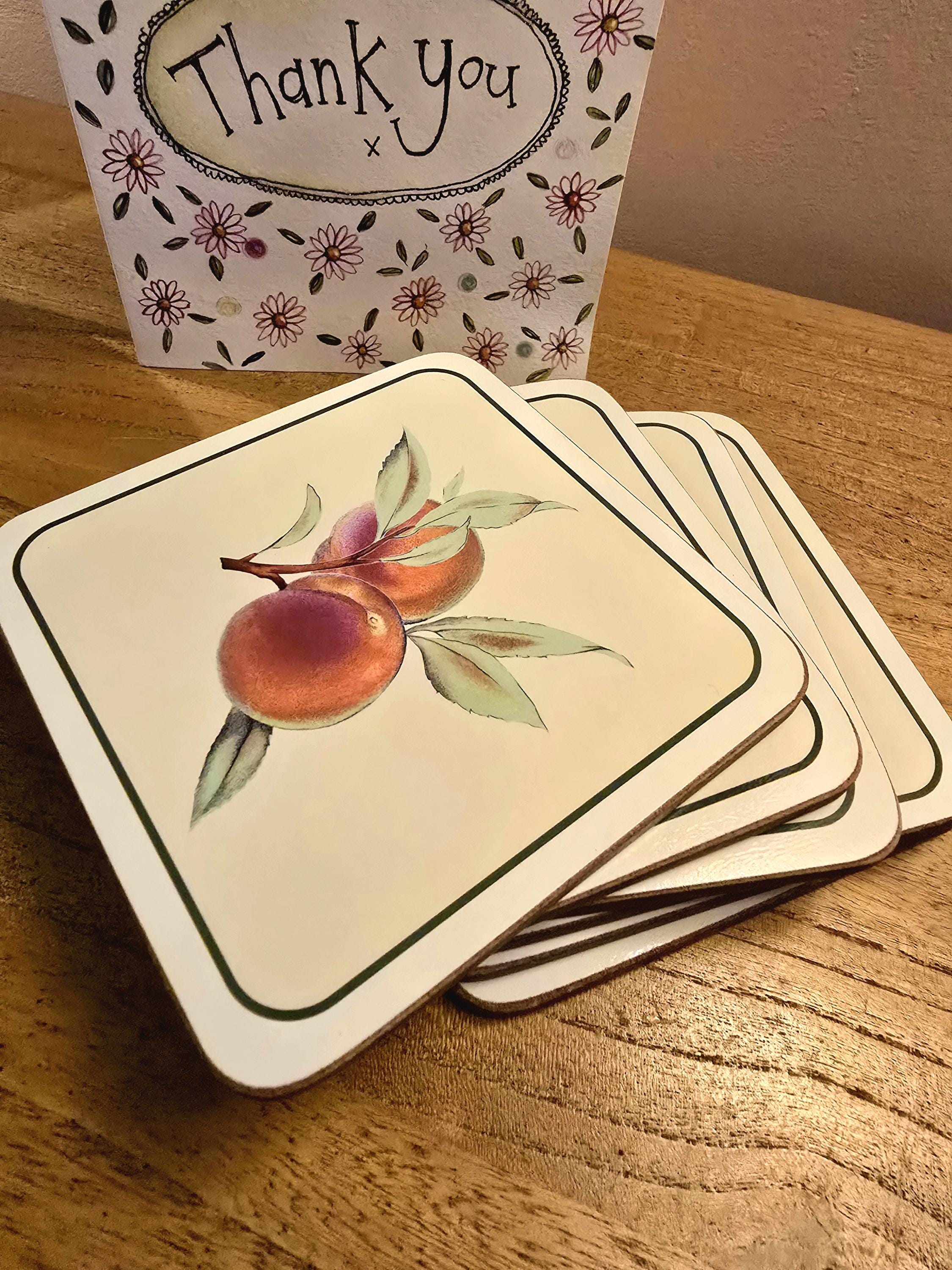 Vintage Fruit Coaster Set – English Orchard Design | Cottagecore Gift