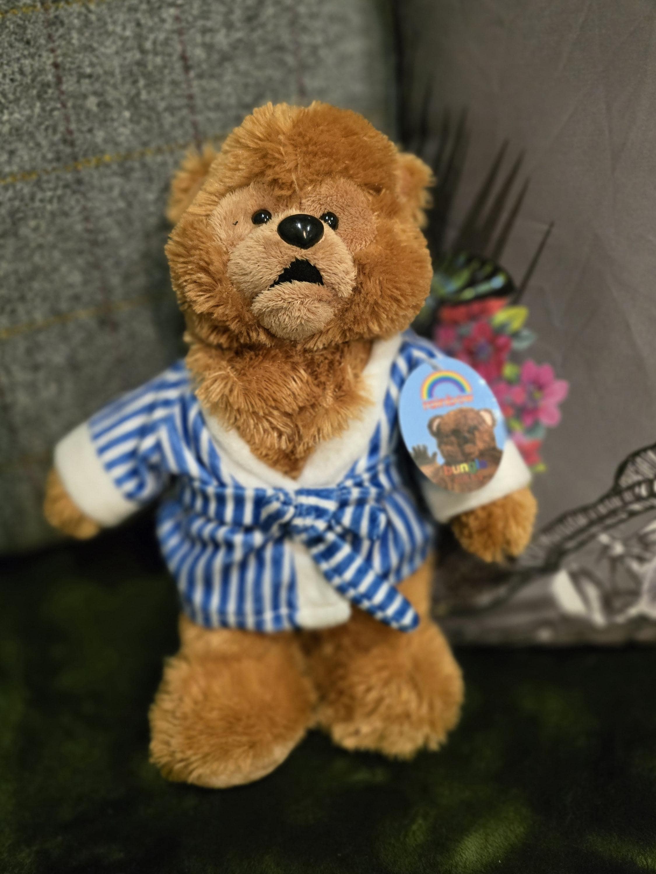 Bungle from Rainbow • Rare Vintage Plush Bear in Striped Robe • 31cm