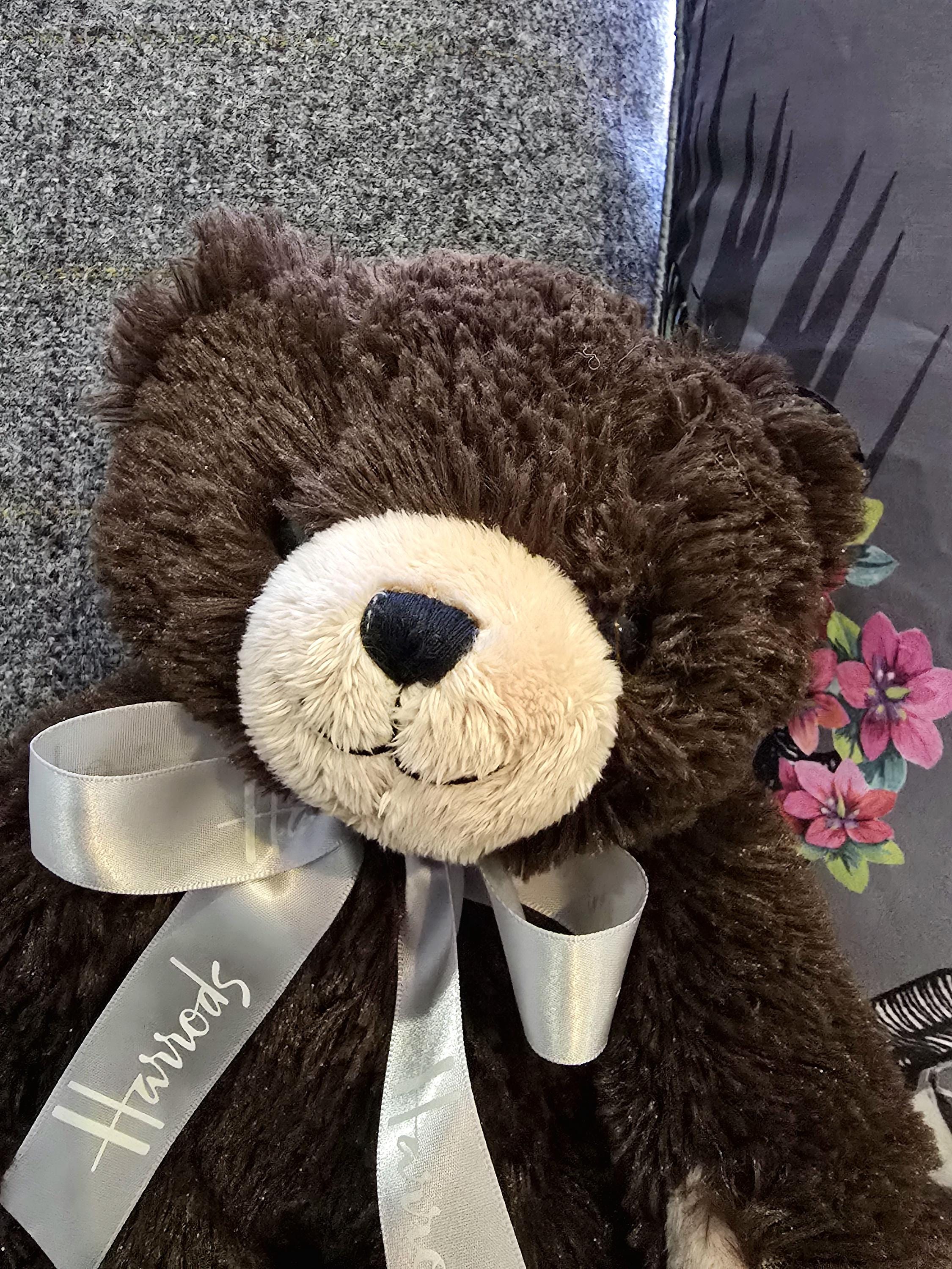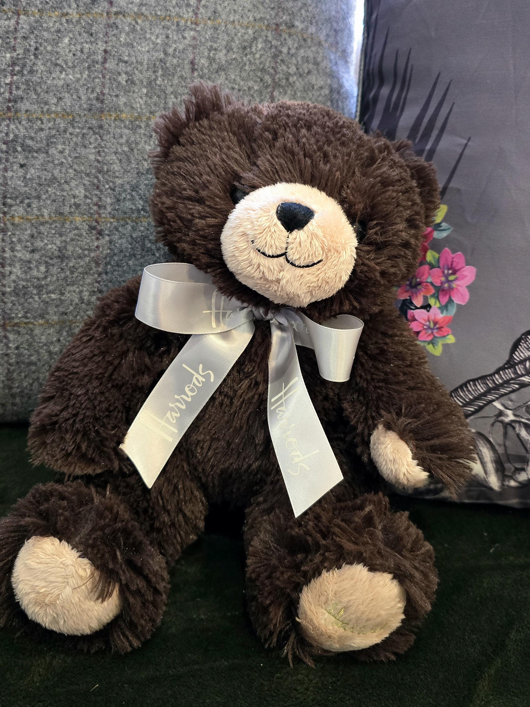 Preloved Twinkle-Furred Soft Bear · 30cm Standing · Harrods Ribbon