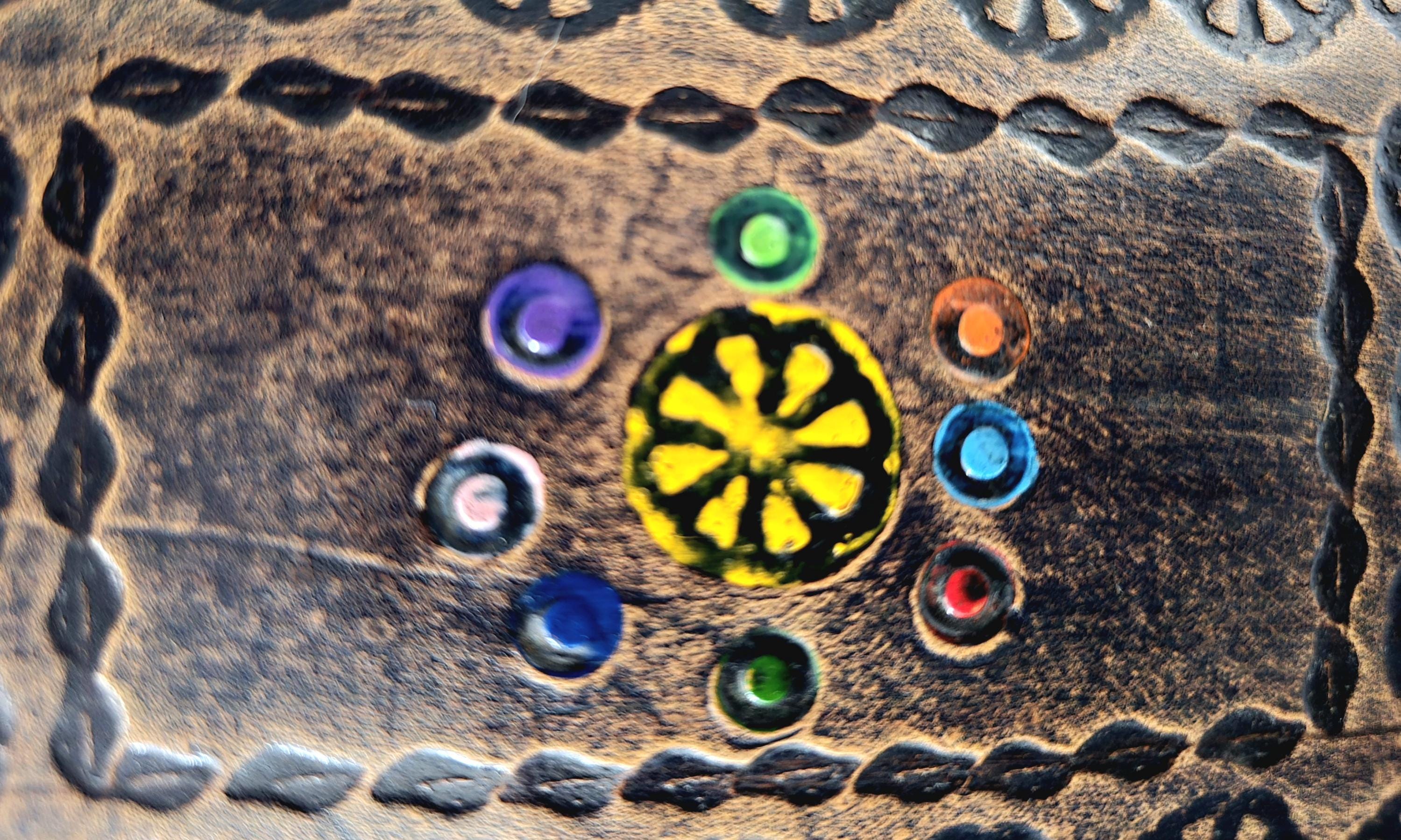 Vintage Carved Keepsake Box: Floral Chakra Style Inlay, Metal Clasp