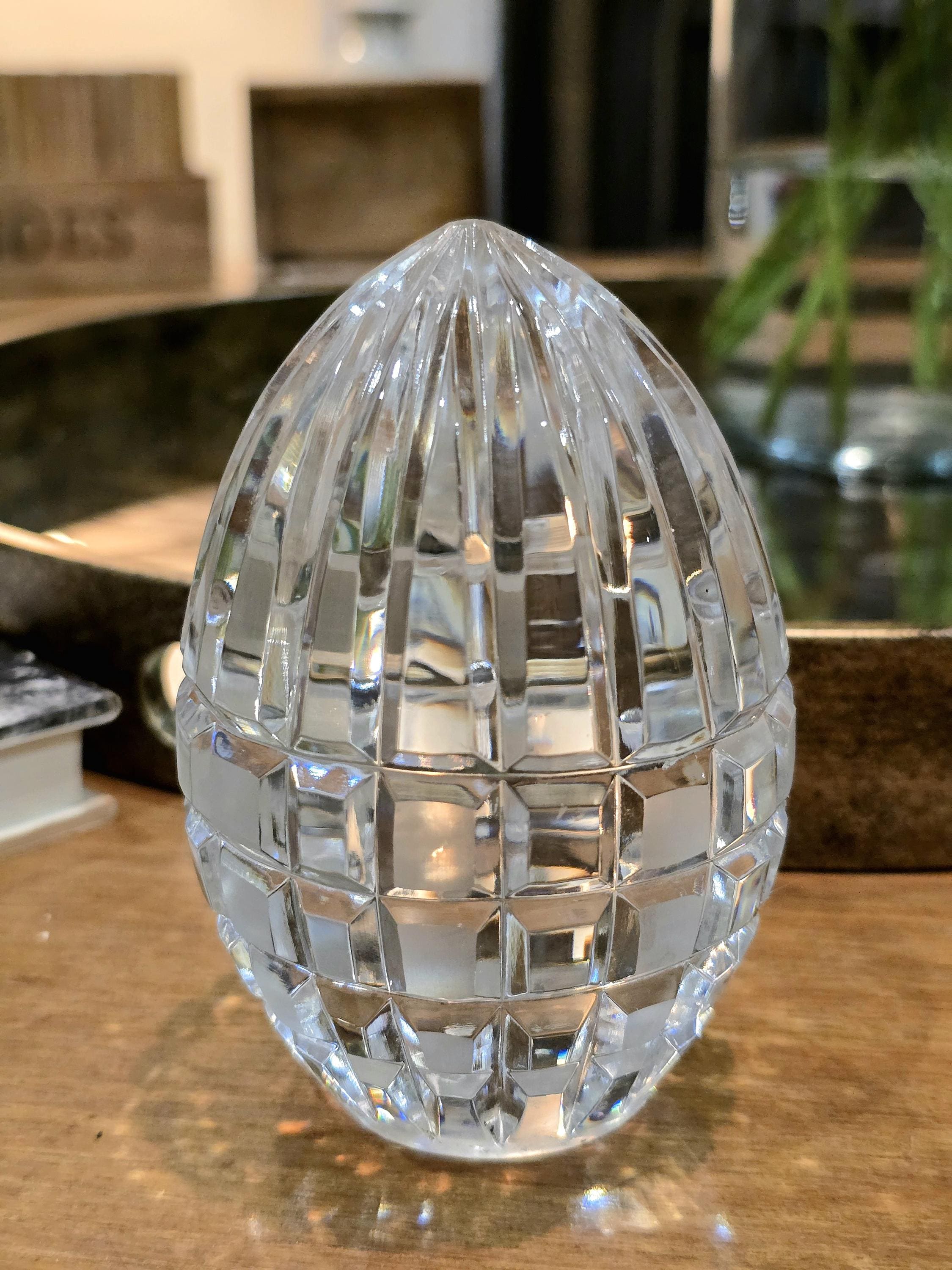 Vintage Faceted Crystal Egg Paperweight: Collectable Glassware
