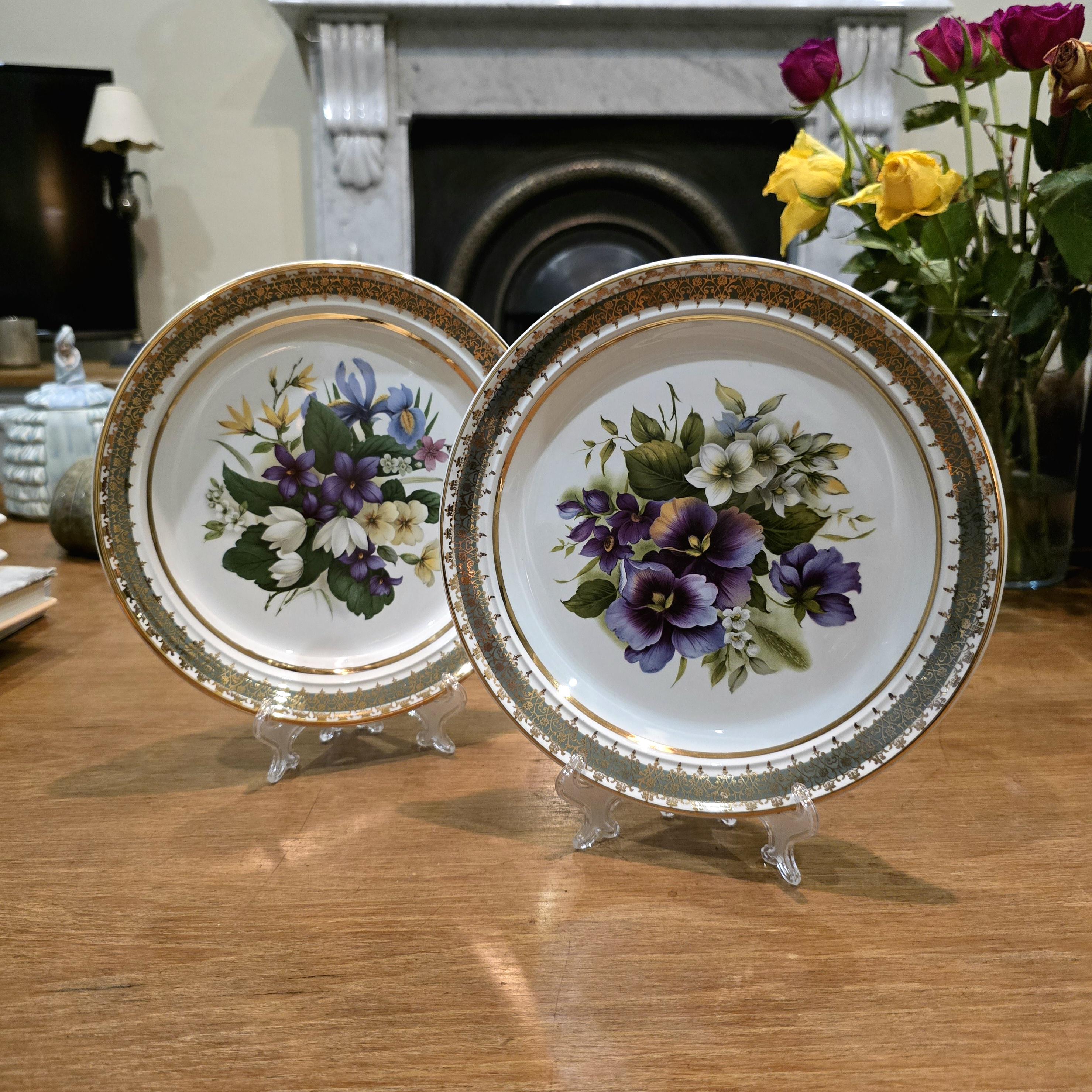 Vintage Porcelain Plates with Gold Rim – Floral Tableware (Set of Two)