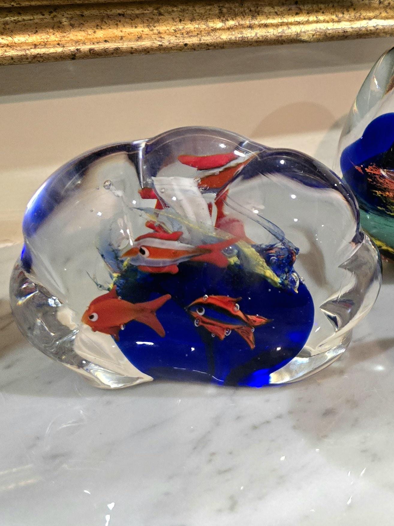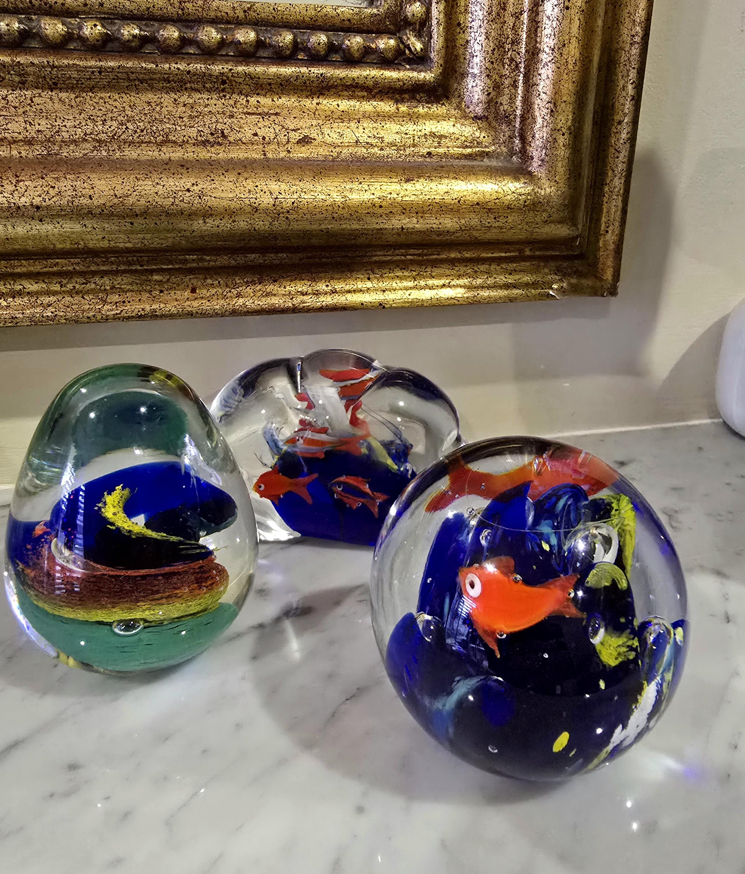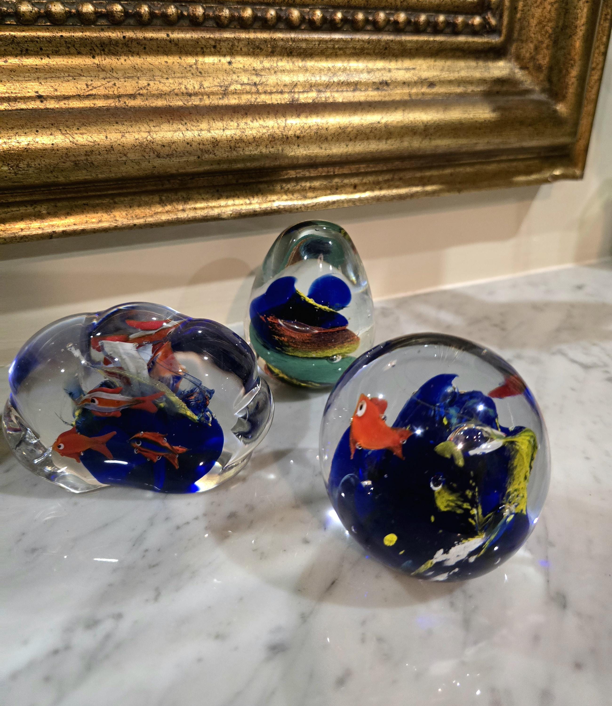 Three Vintage Murano style Aquarium Paperweights | Collectors Art Glass