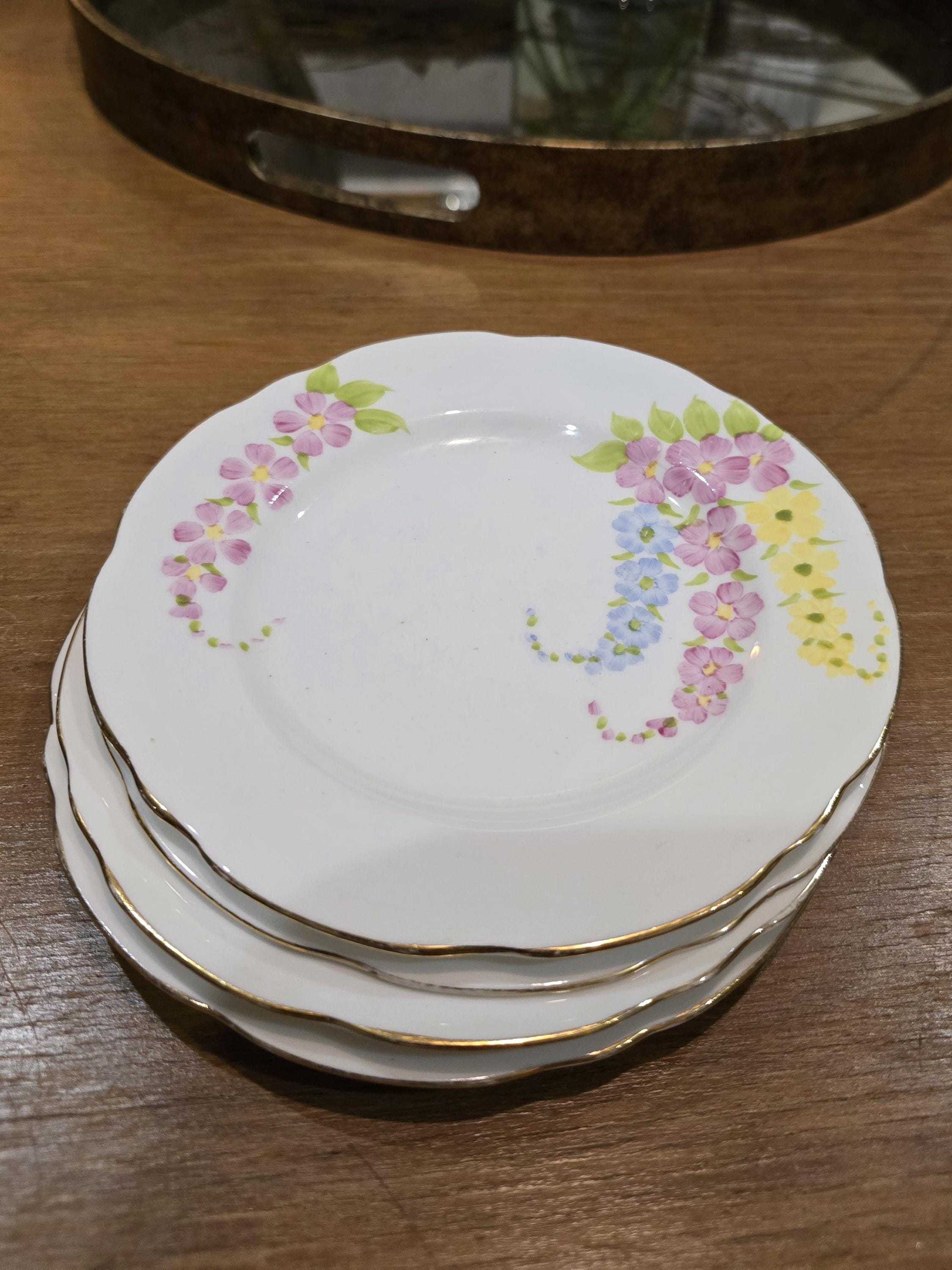 Four Art Deco Porcelain Side Plates – Floral Rim, Gold Trim Plates | Vintage Chic