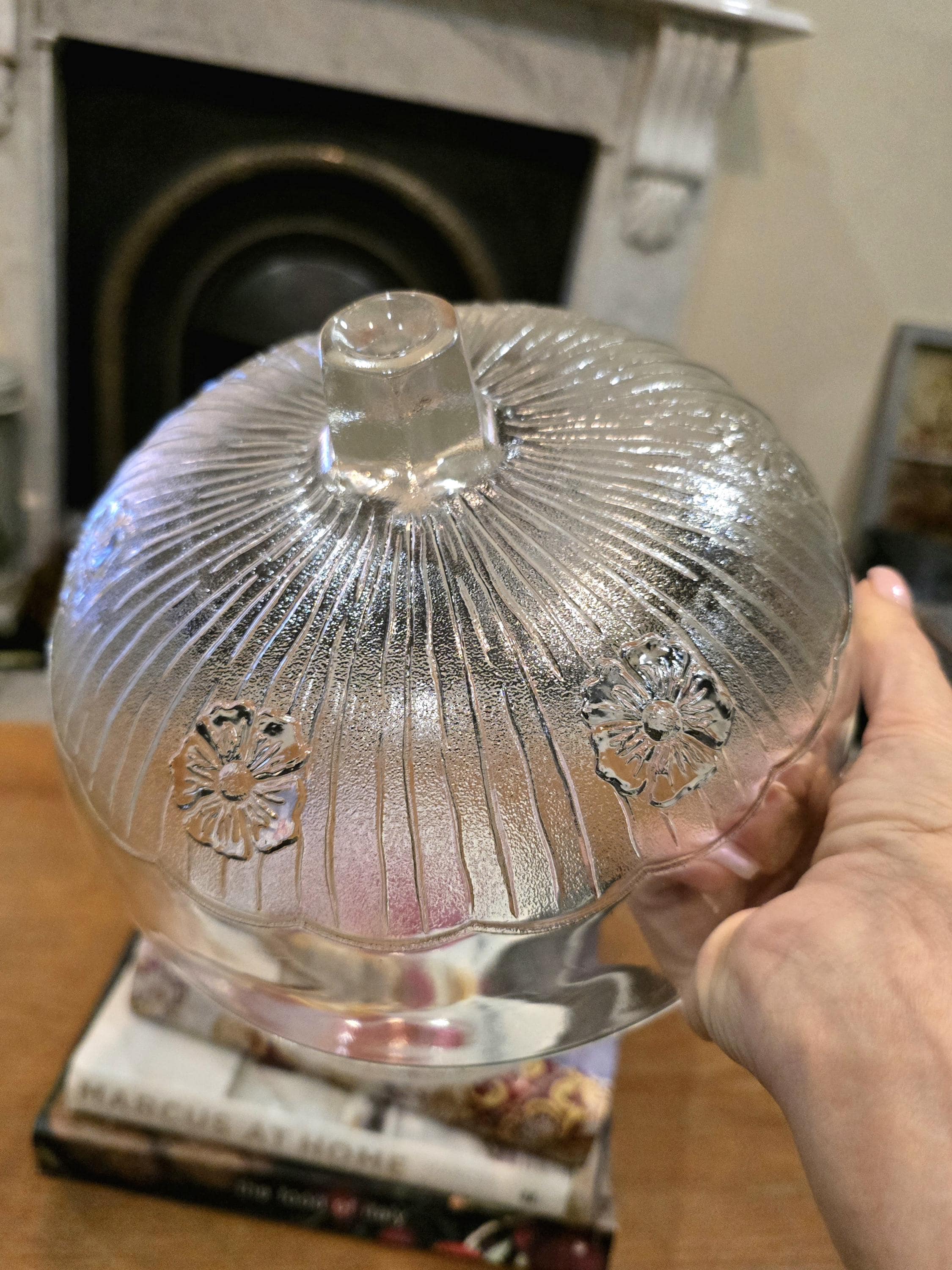 Vintage Pressed Glass Cheese Dome & Underplate – Scalloped Edge Glass Cloche – The Plum Dish Vintage Treasures