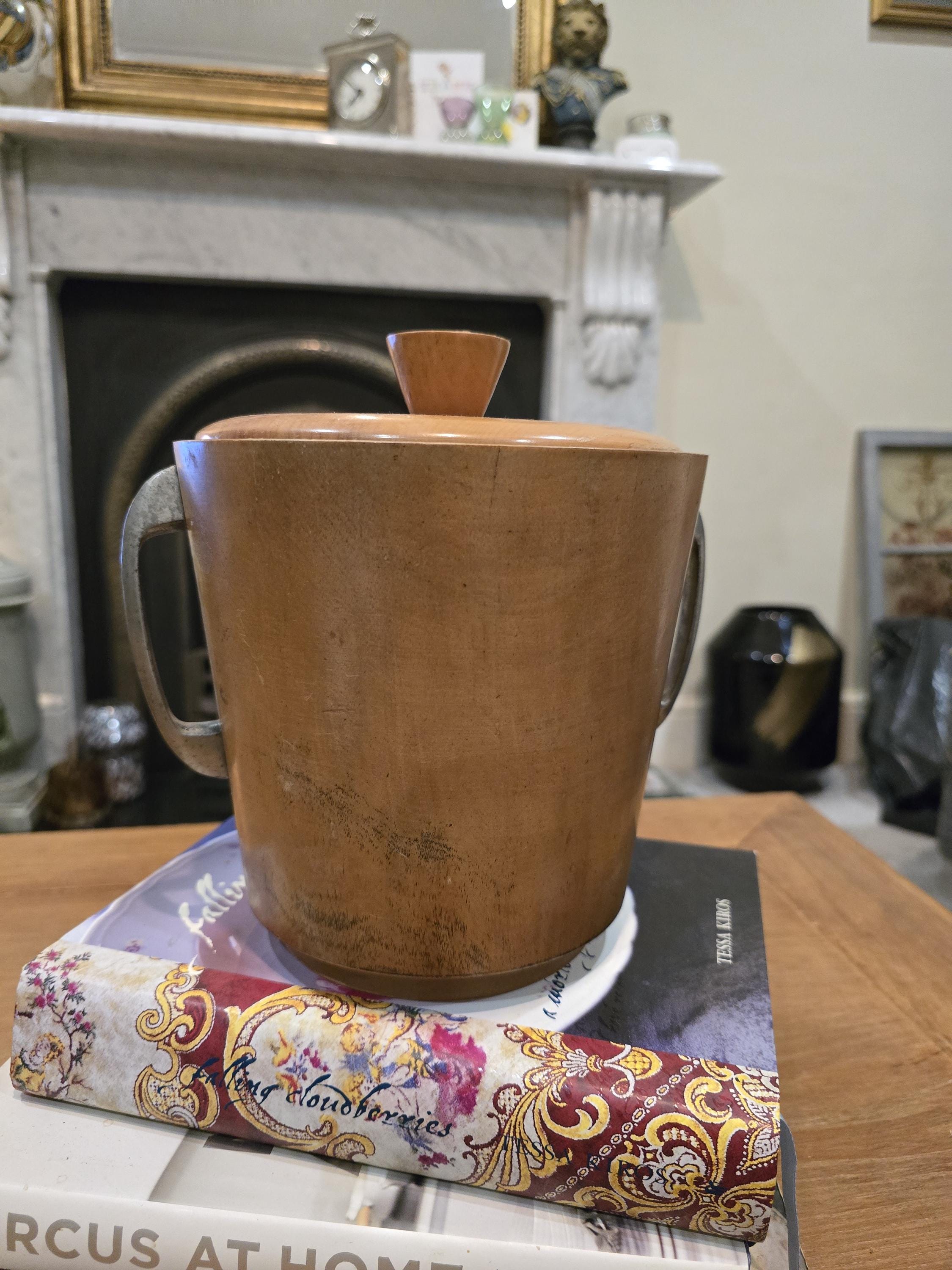 Vintage Mid-Century Modern Wood Ice Bucket – Retro Barware with Aluminum Liner – The Plum Dish Vintage Treasures