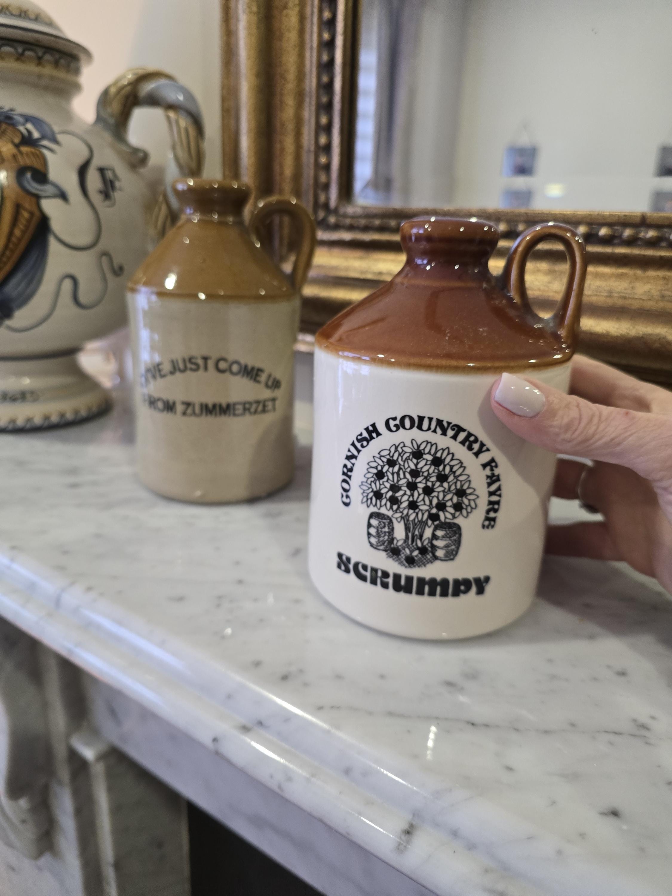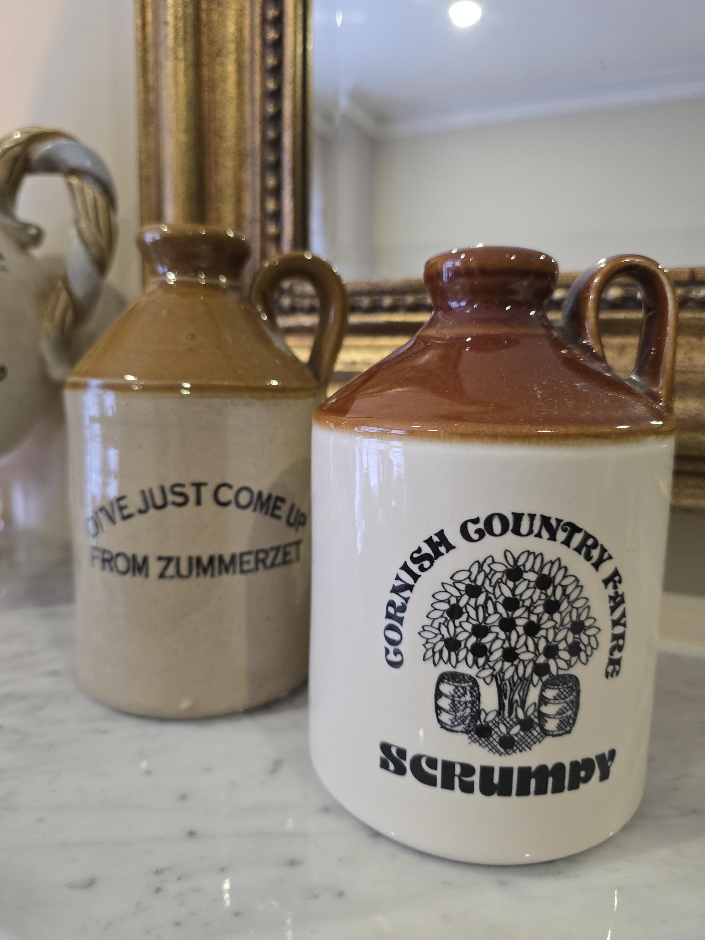 Vintage West Country Stoneware Cider Jugs - Set of 2 | "Zummerzet" & Cornish Scrumpy Pottery | Rustic Decor