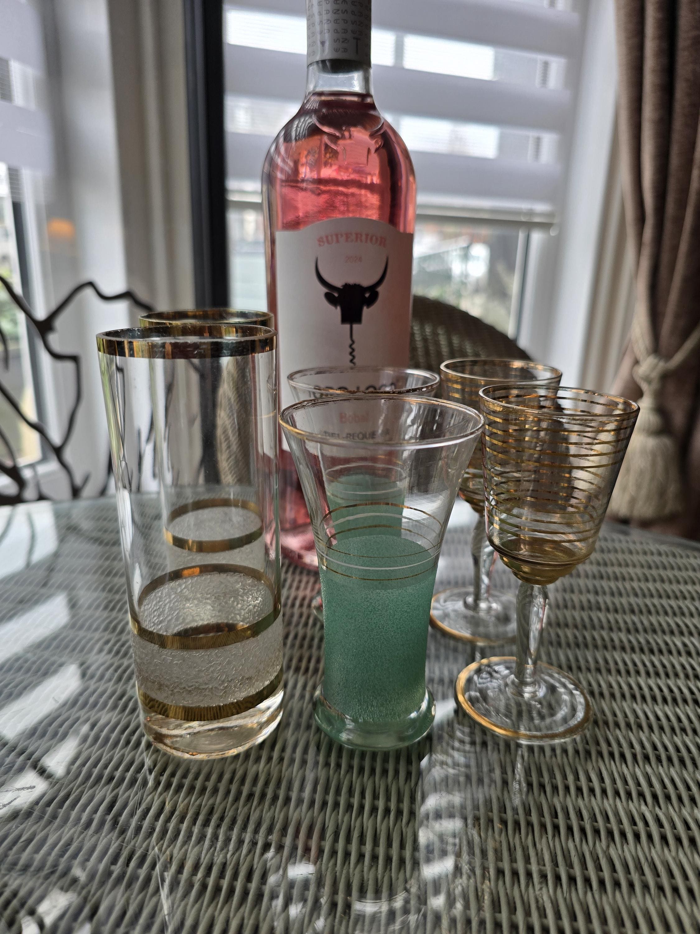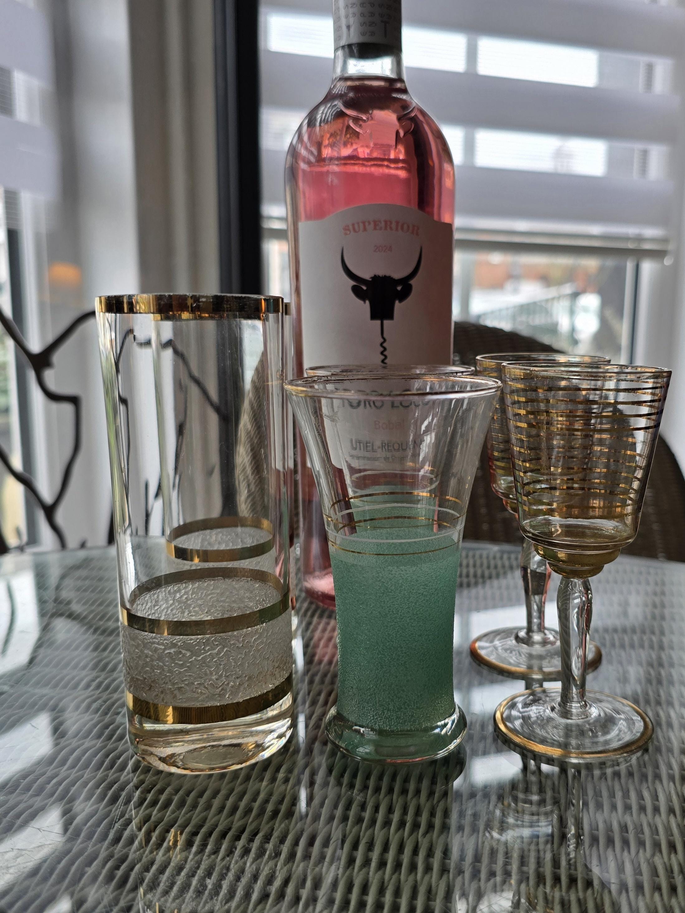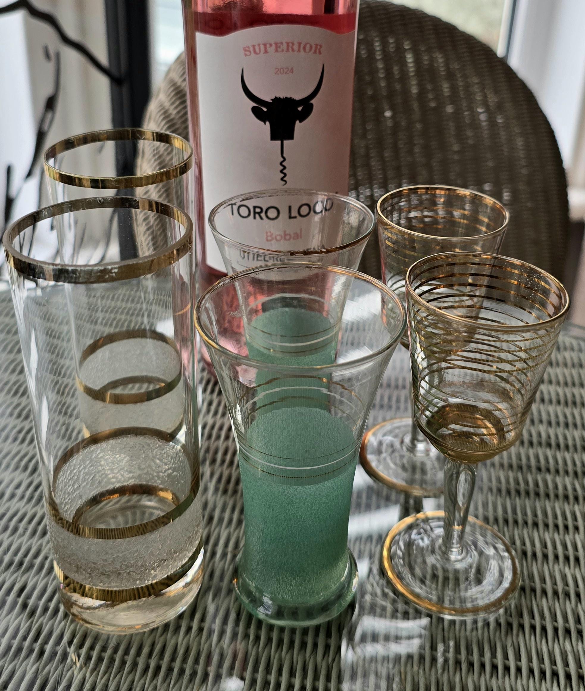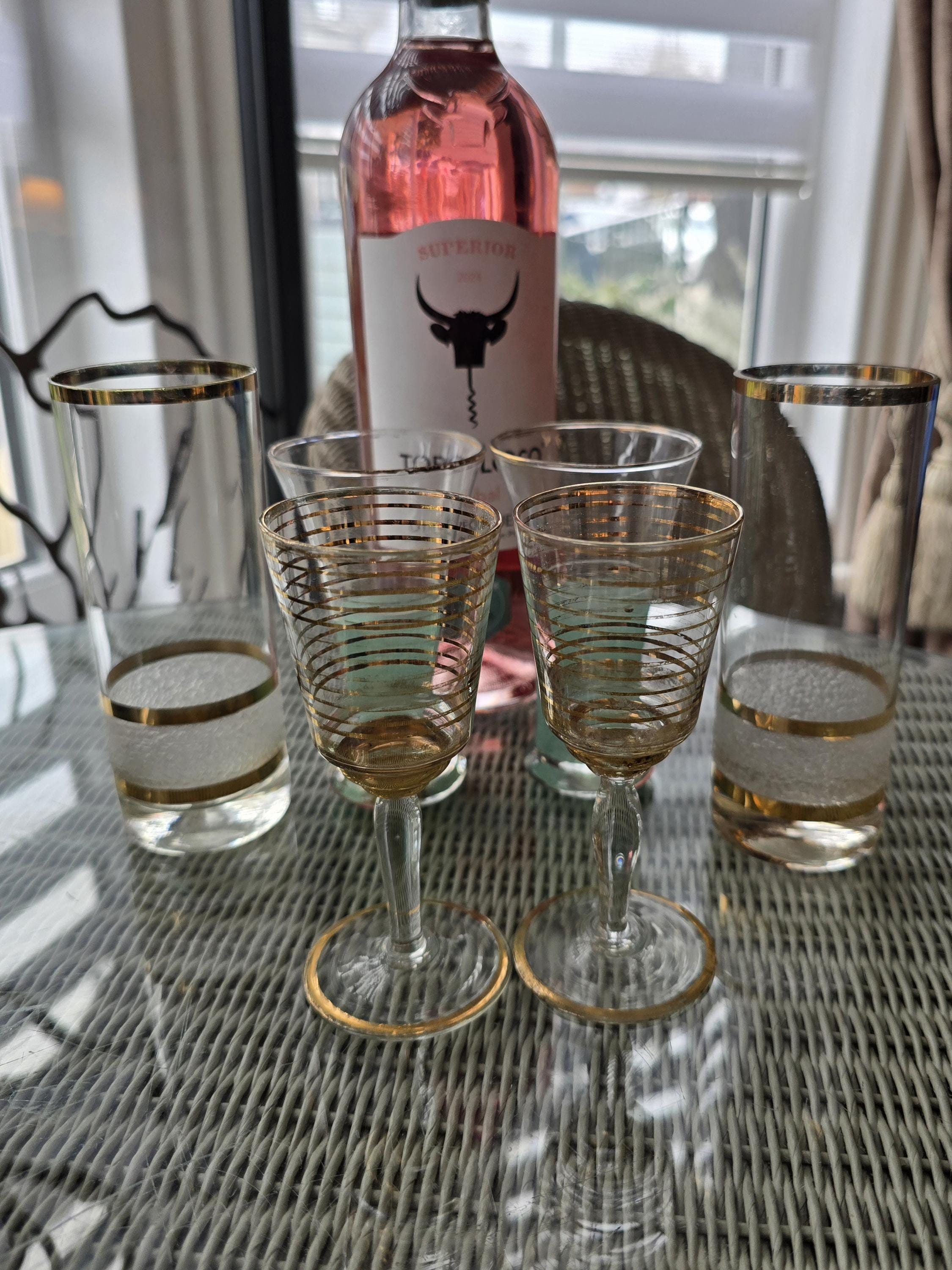 Add a touch of 1950s glamour to your drinks for two with this stunning 6-piece mixed set of vintage cocktail glassware. Featuring rich gold-leaf accents and unique mid-century textures, this set is perfect for the entertainer who loves a "collected" Hollywood Regency or Mad Men aesthetic.