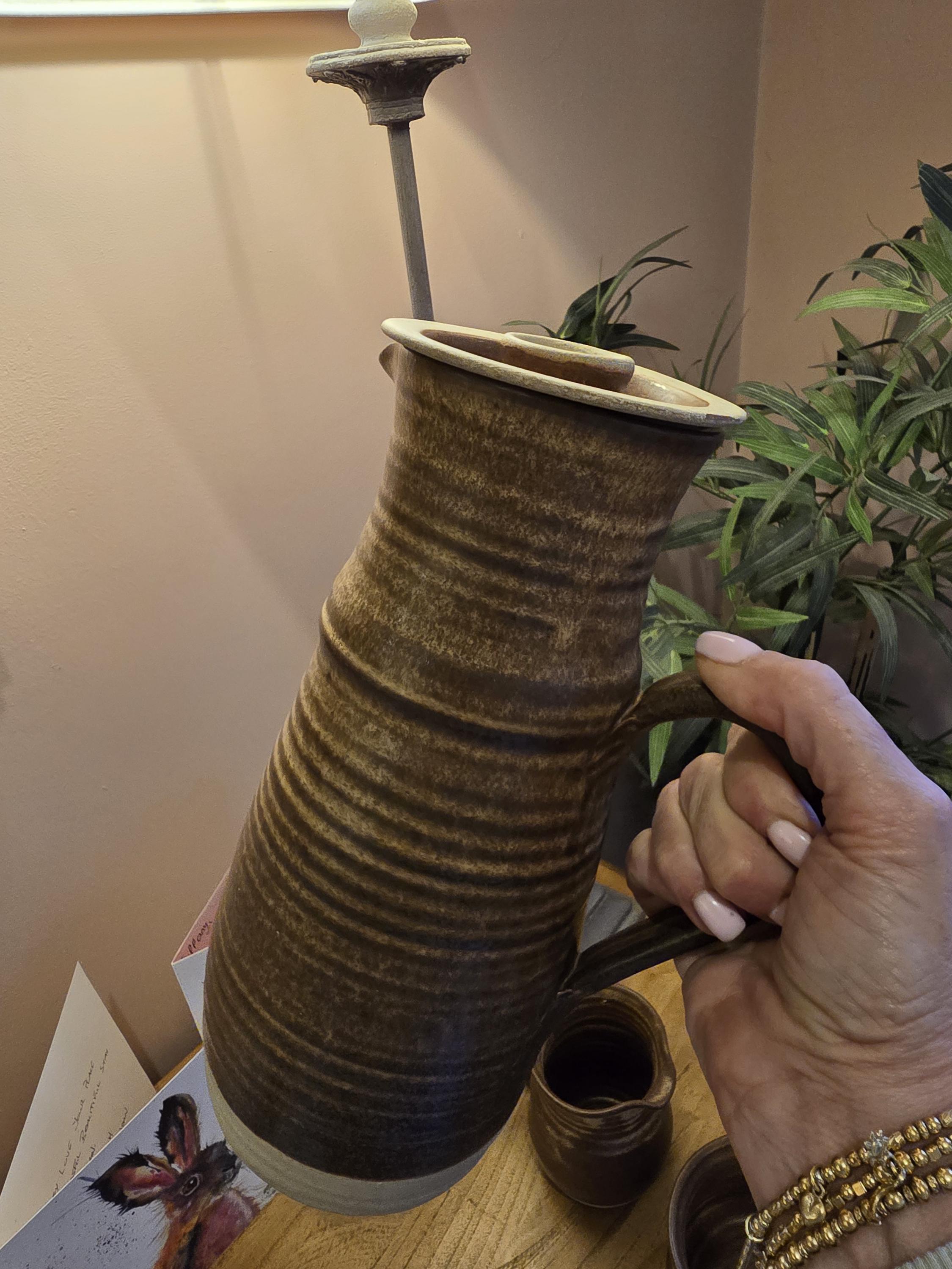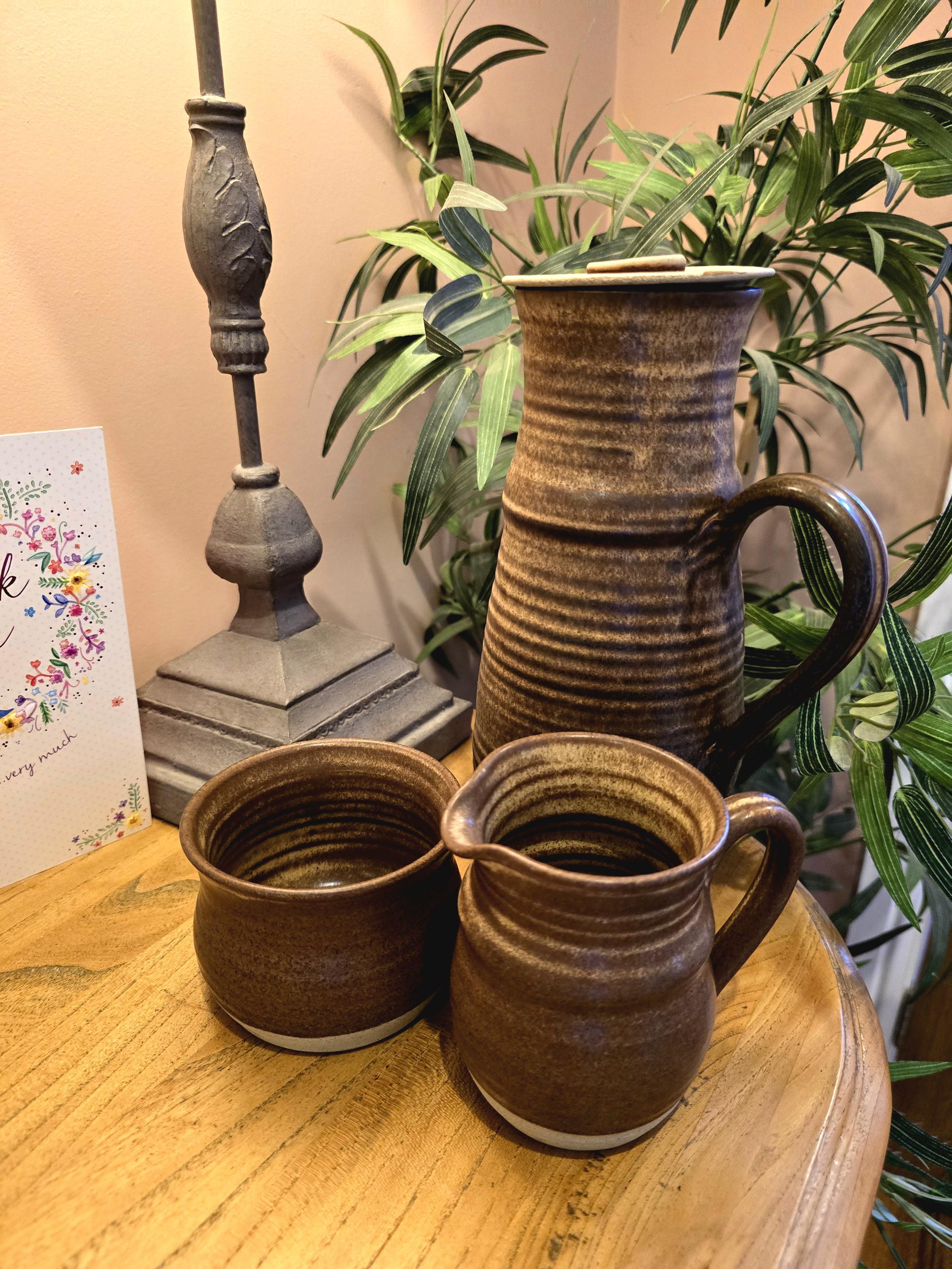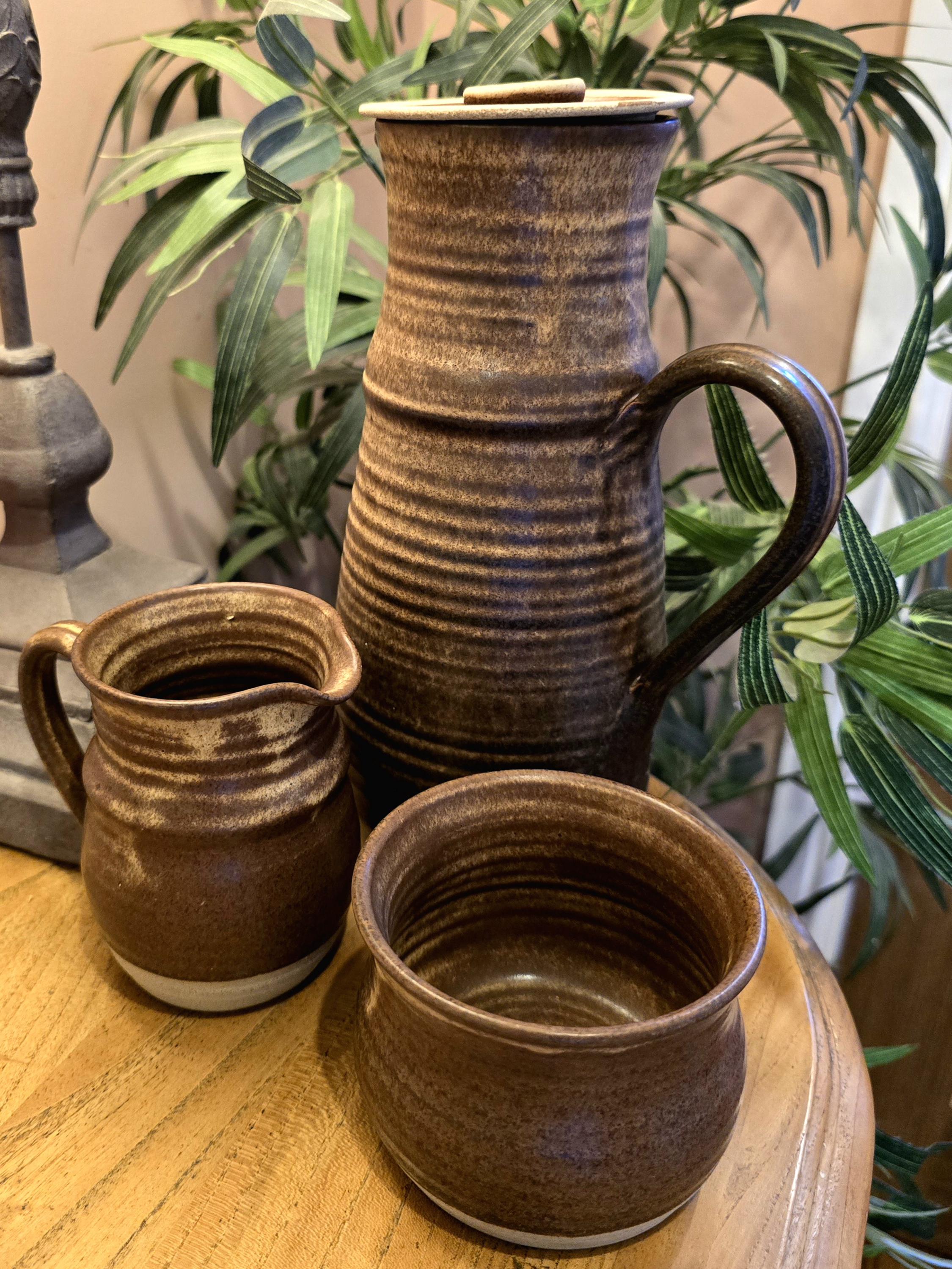 Vintage Studio Pottery Coffee Set – Brown Glazed Stoneware Pitcher & Creamer