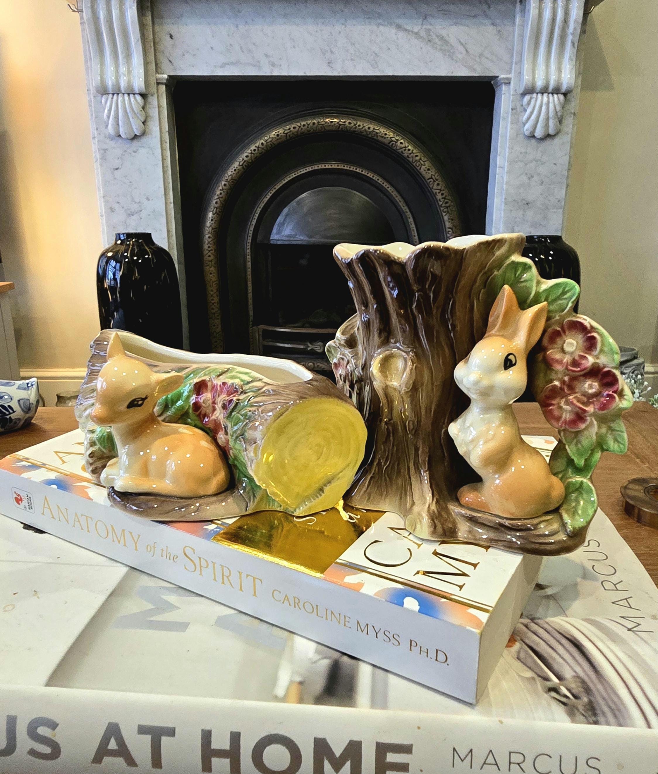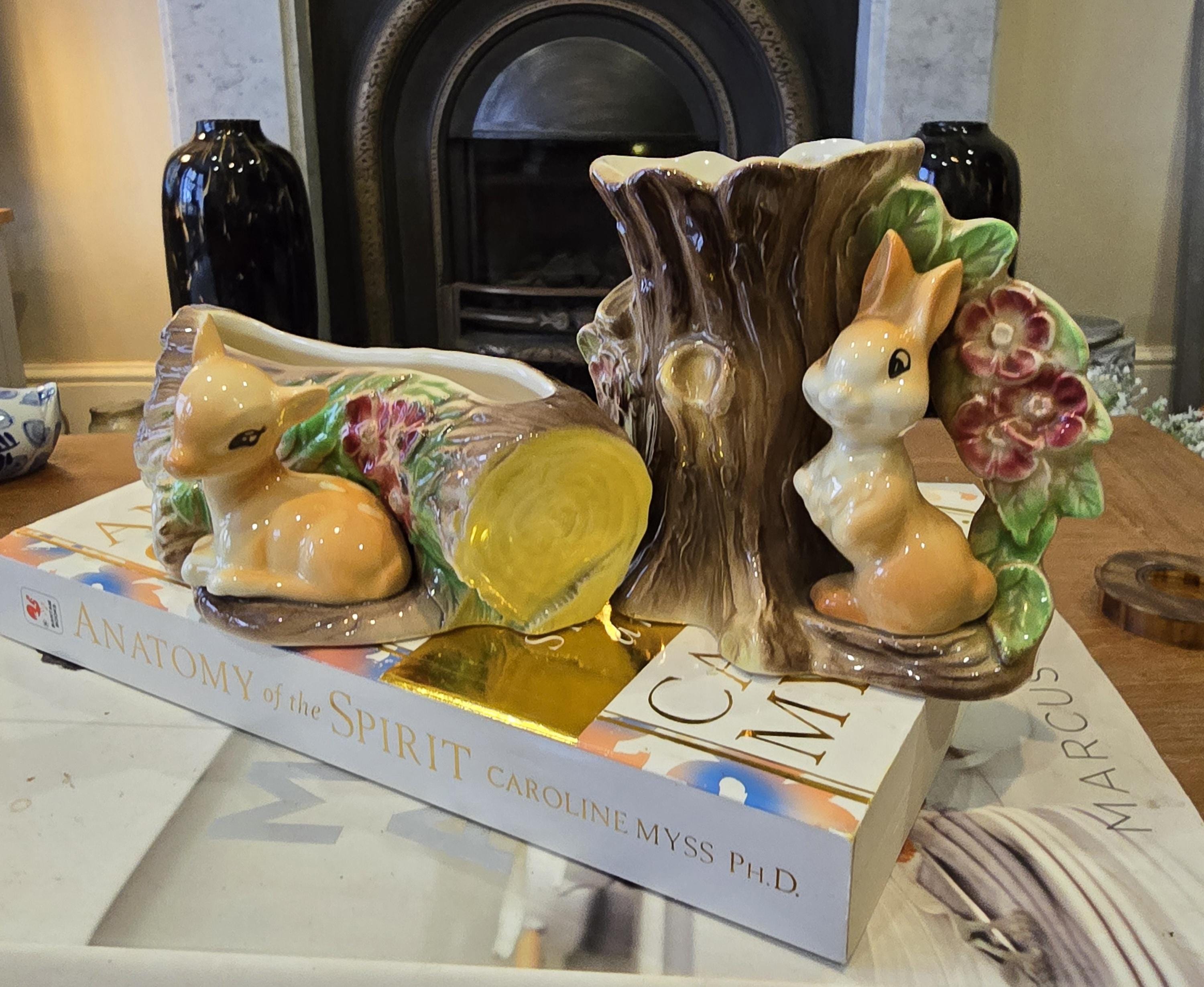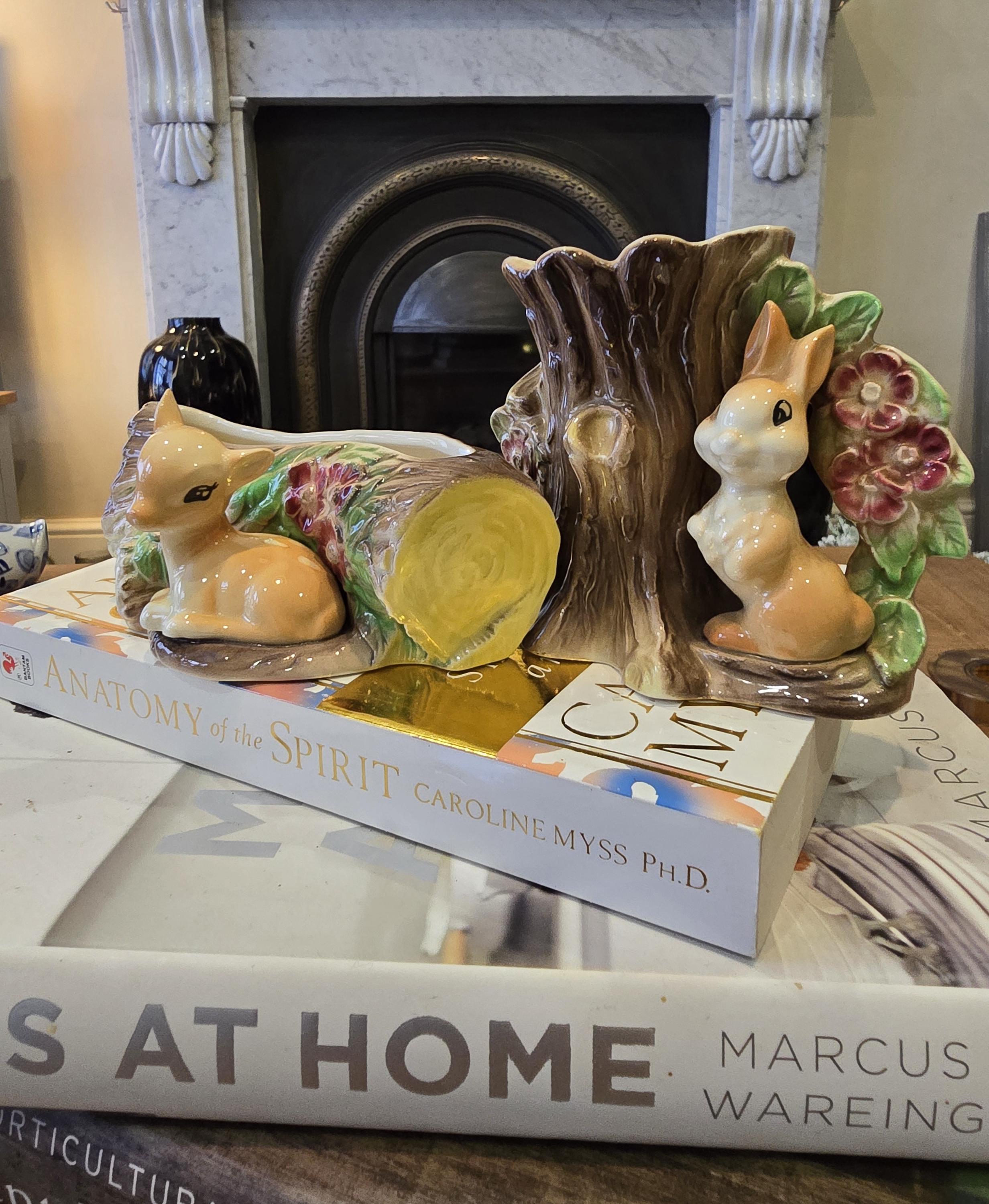 A charming pair of original Hornsea woodland ceramics, full of that soft 1970s nostalgia and gentle countryside warmth. Each piece features a sweet woodland creature nestled against a textured tree‑trunk backdrop with floral detailing — classic Hornsea whimsy at its best.