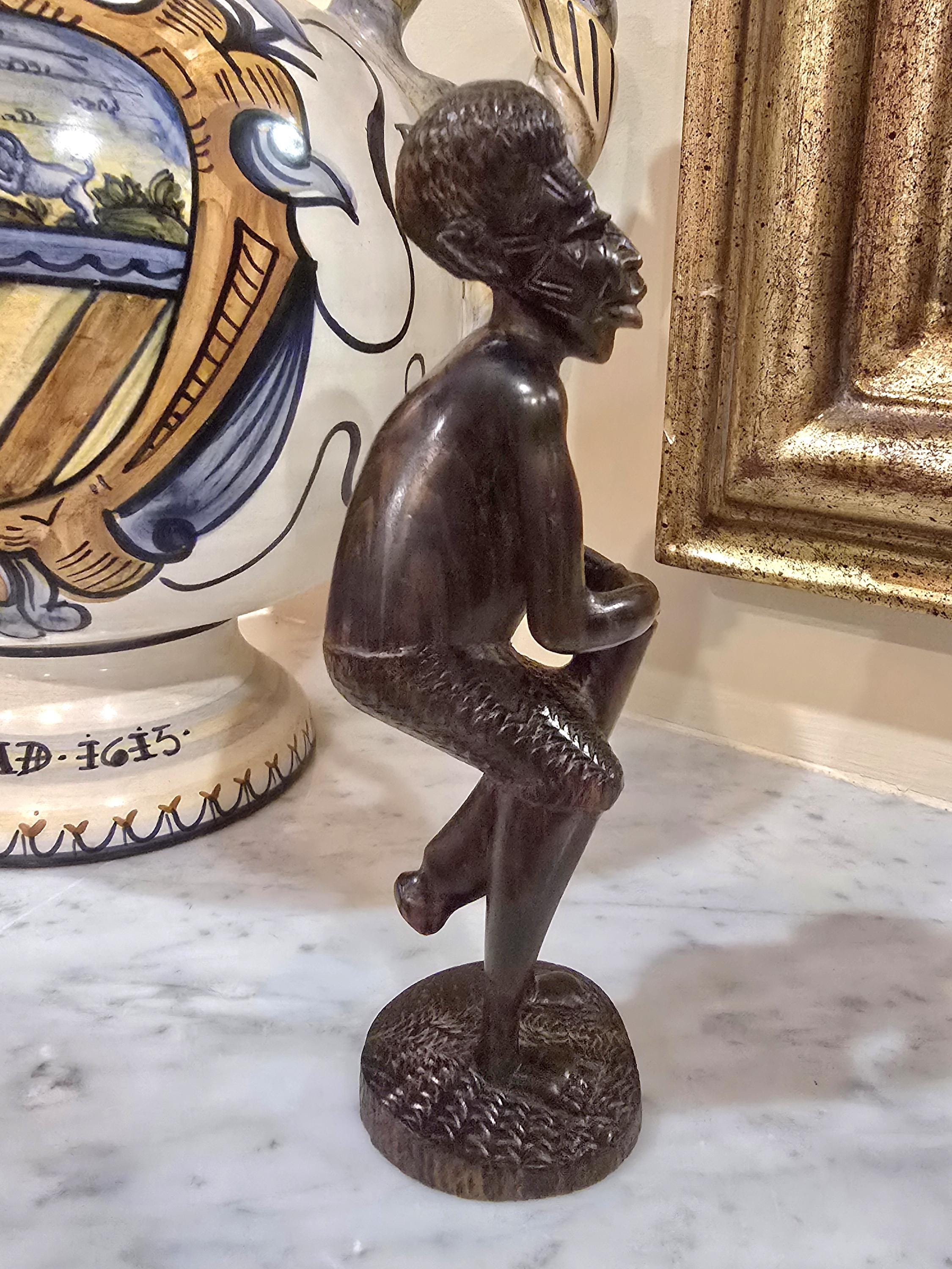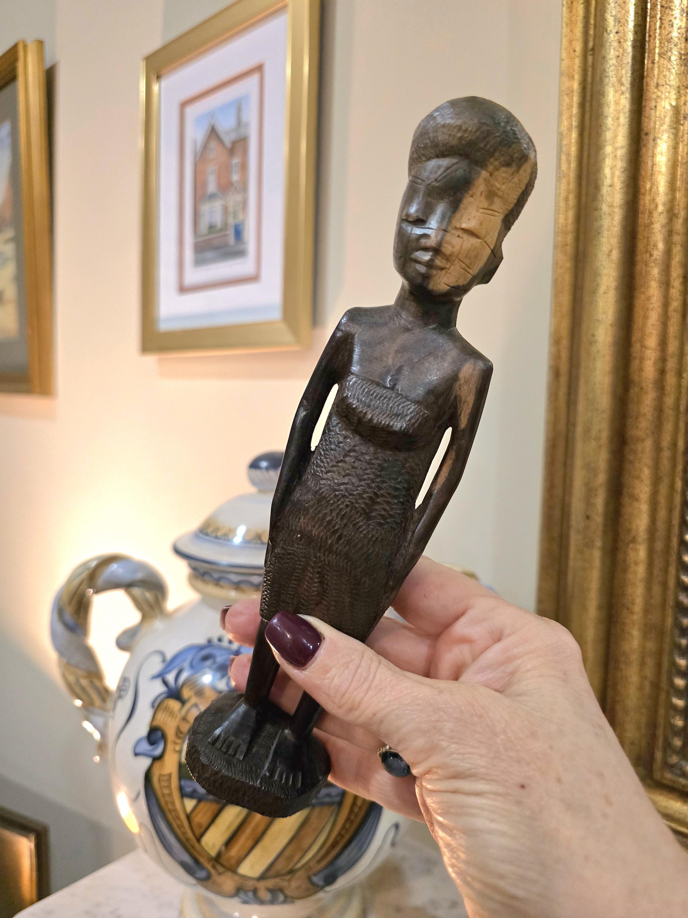 Hand Carved Ebony Wood African Tribal Figurines – Mid Century Modern Home Decor Set