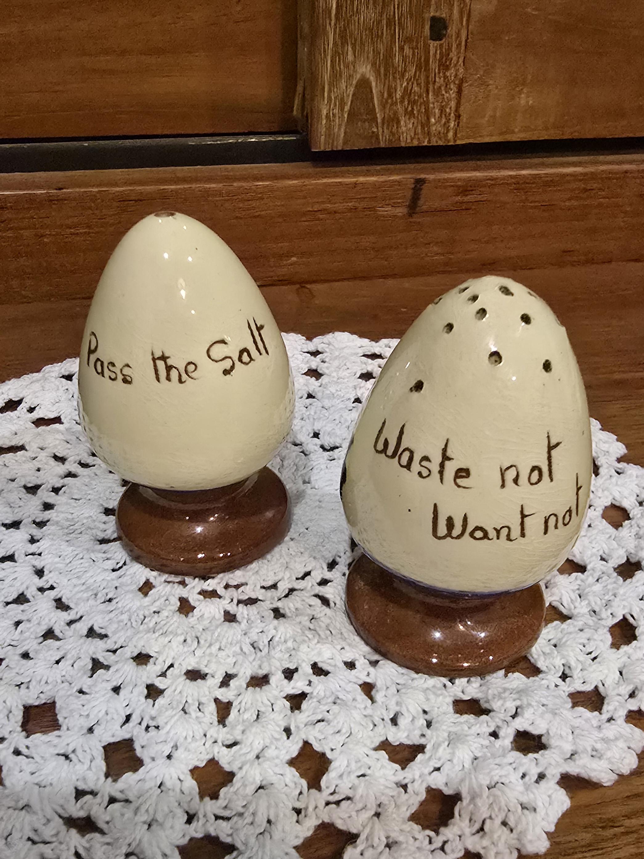 ​The Pepper Shaker: Features multiple holes and the traditional proverb: "Waste not, Want not".