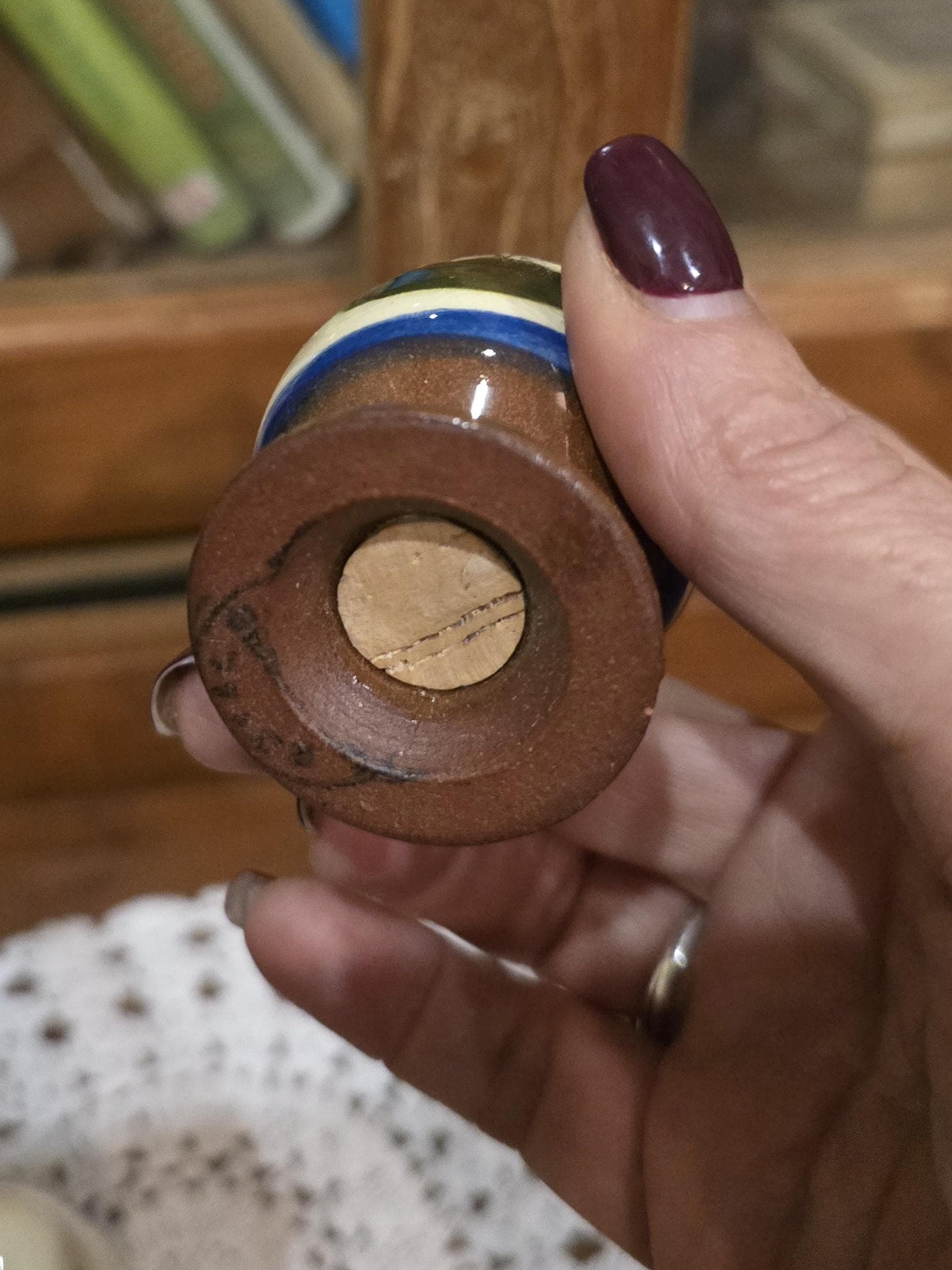 ​The glaze shows a lovely aged patina typical of authentic vintage earthenware.