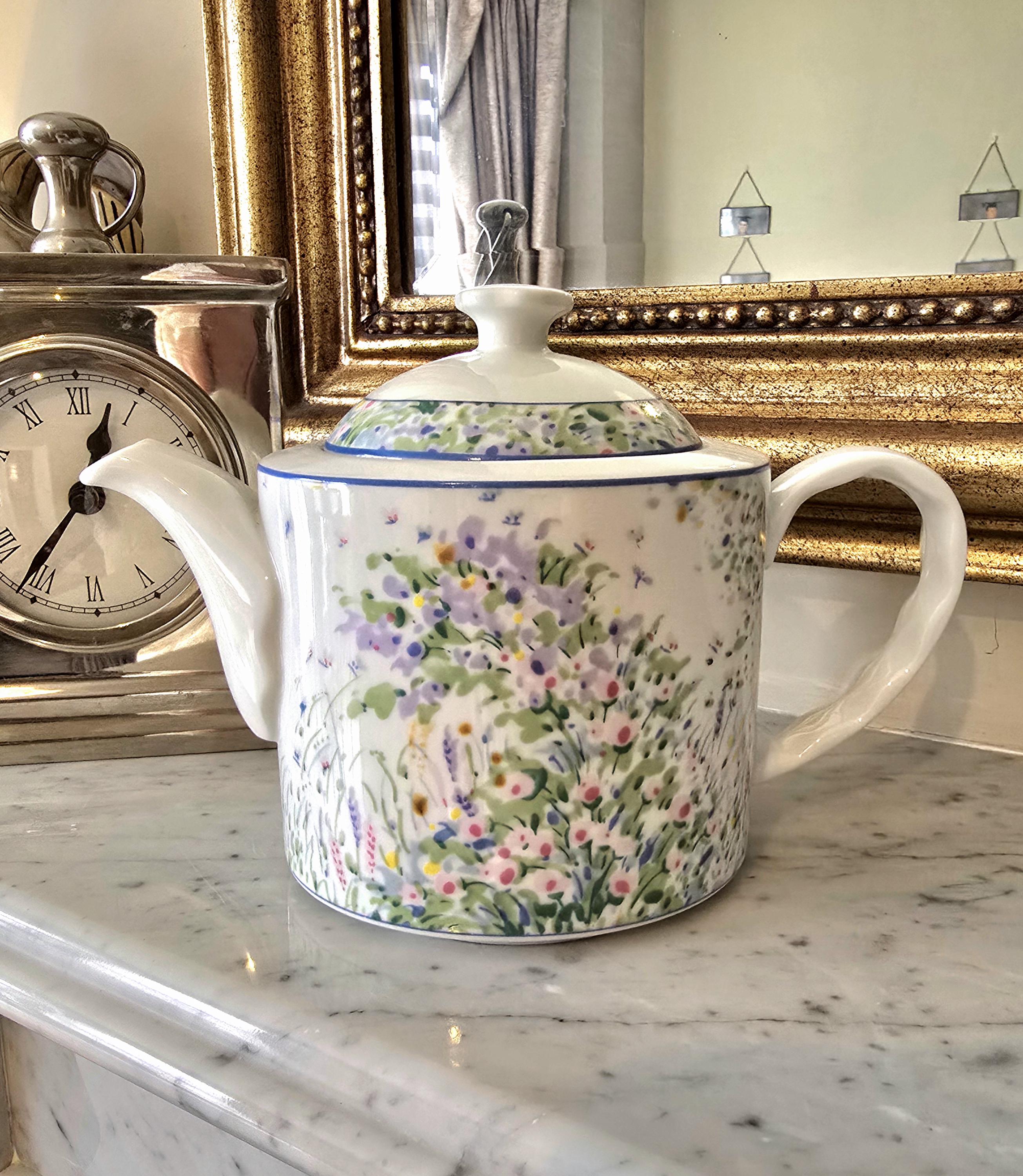 Bring a touch of a blossoming English meadow to your breakfast table with this charming Royal Porcelain teapot. Featuring a delicate, impressionist-style floral design, this piece is as practical as it is pretty.