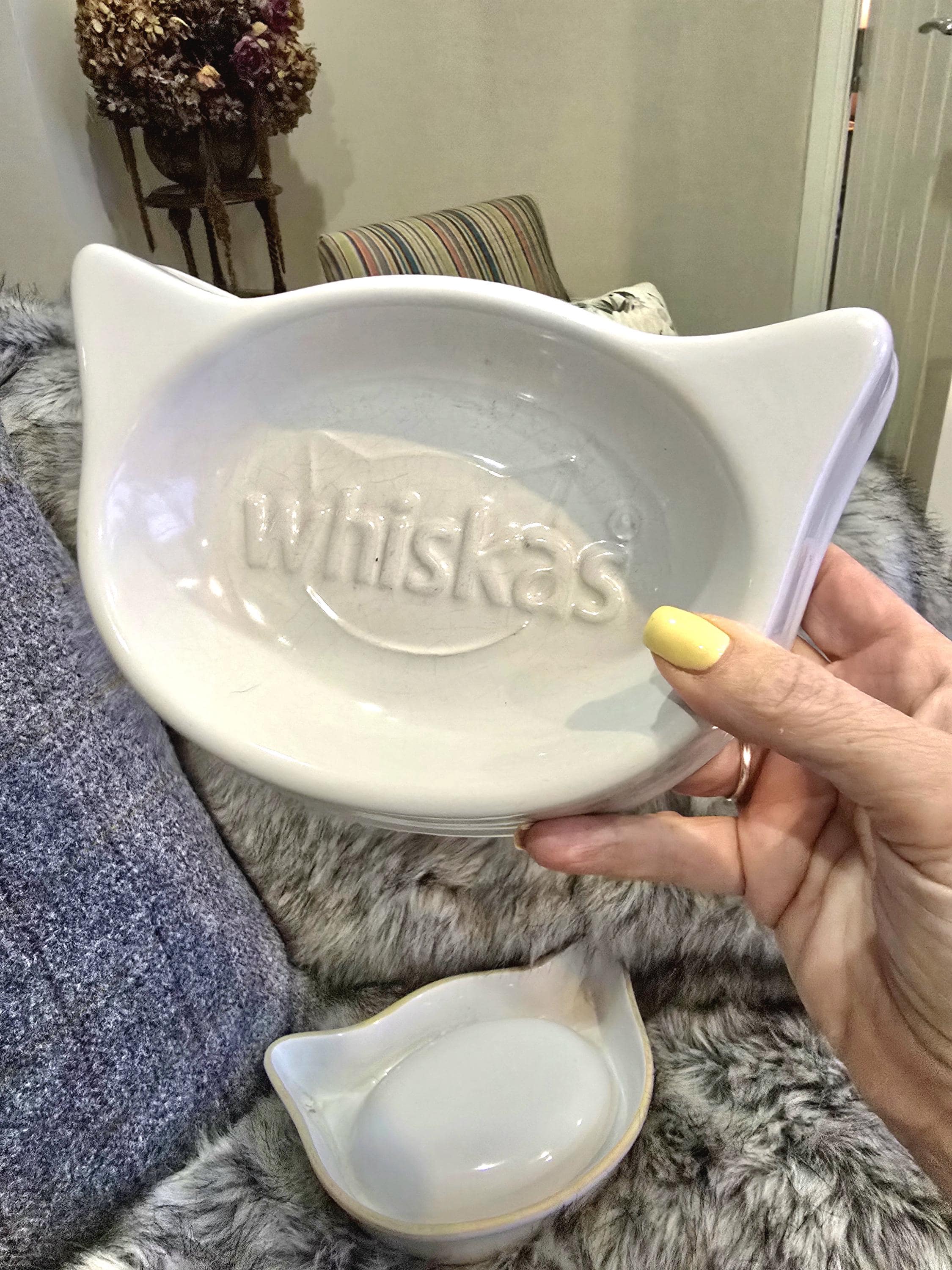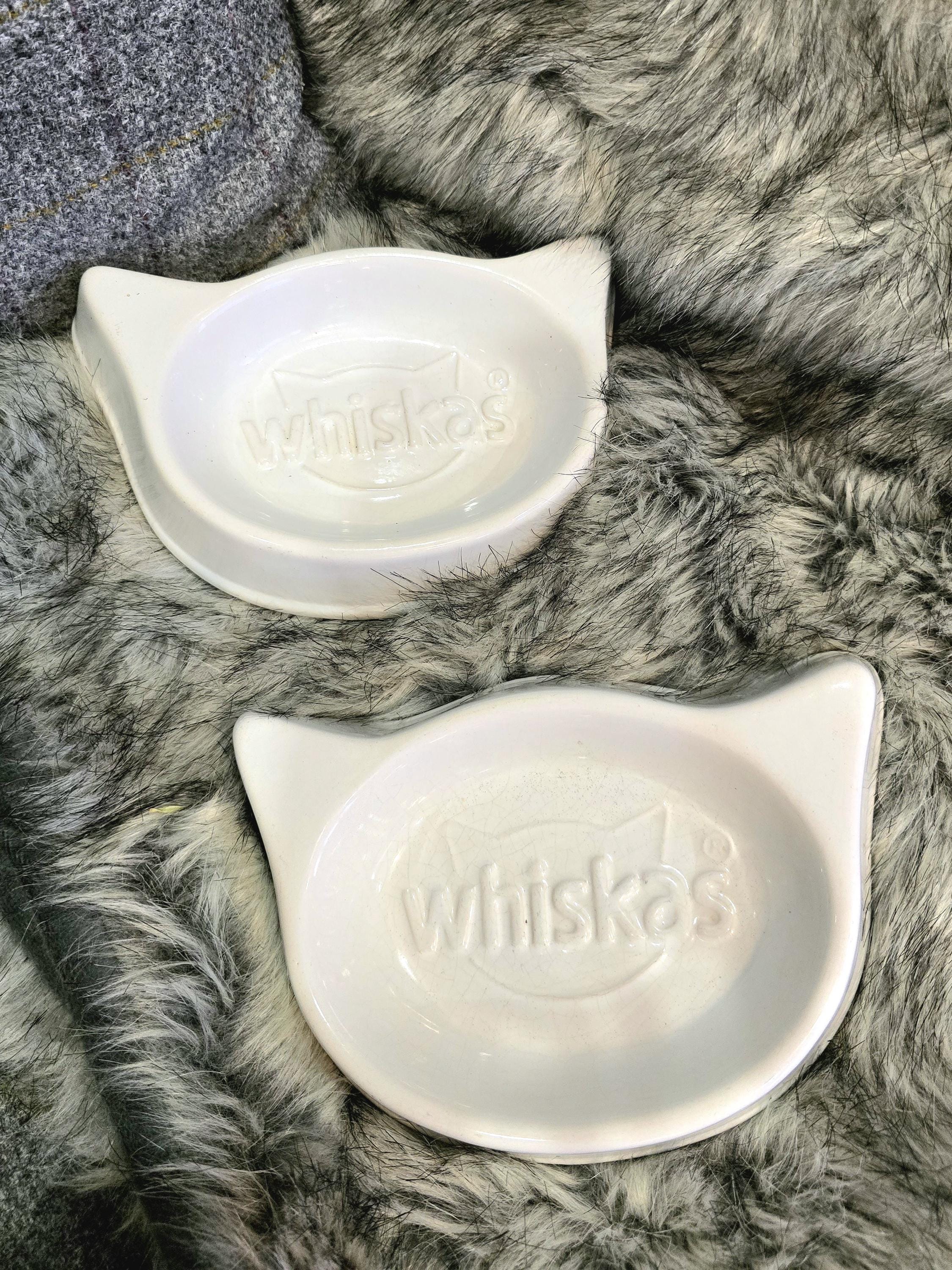 Vintage Whiskas Ceramic Cat Bowls | Iconic Cat Head Shape, Retro Pet Decor